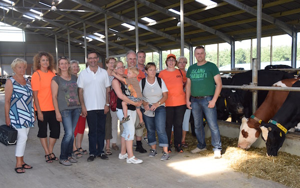 Der zweite Stopp war in Gartrop bei der Fengels KG. Thorsten Fengels stellte seinen voll elektronischen Kuhstall vor. Die 230 Kühe gehen selbstständig in die Boxen, um sich von Robotern melken zu lassen. Dabei werden Sie von Futter angelockt und der Roboterarm kann mithilfe der eingebauten Kamera die Zitzen genau orten. Jede Kuh wird beim Melken elektronisch erfasst, Uhrzeit und Abgabemenge werden dabei registriert.